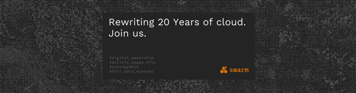 Swarm is the missing piece that will make the world computer a truly decentralised and unstoppable machine. Just as it was meant to be from the very start.
