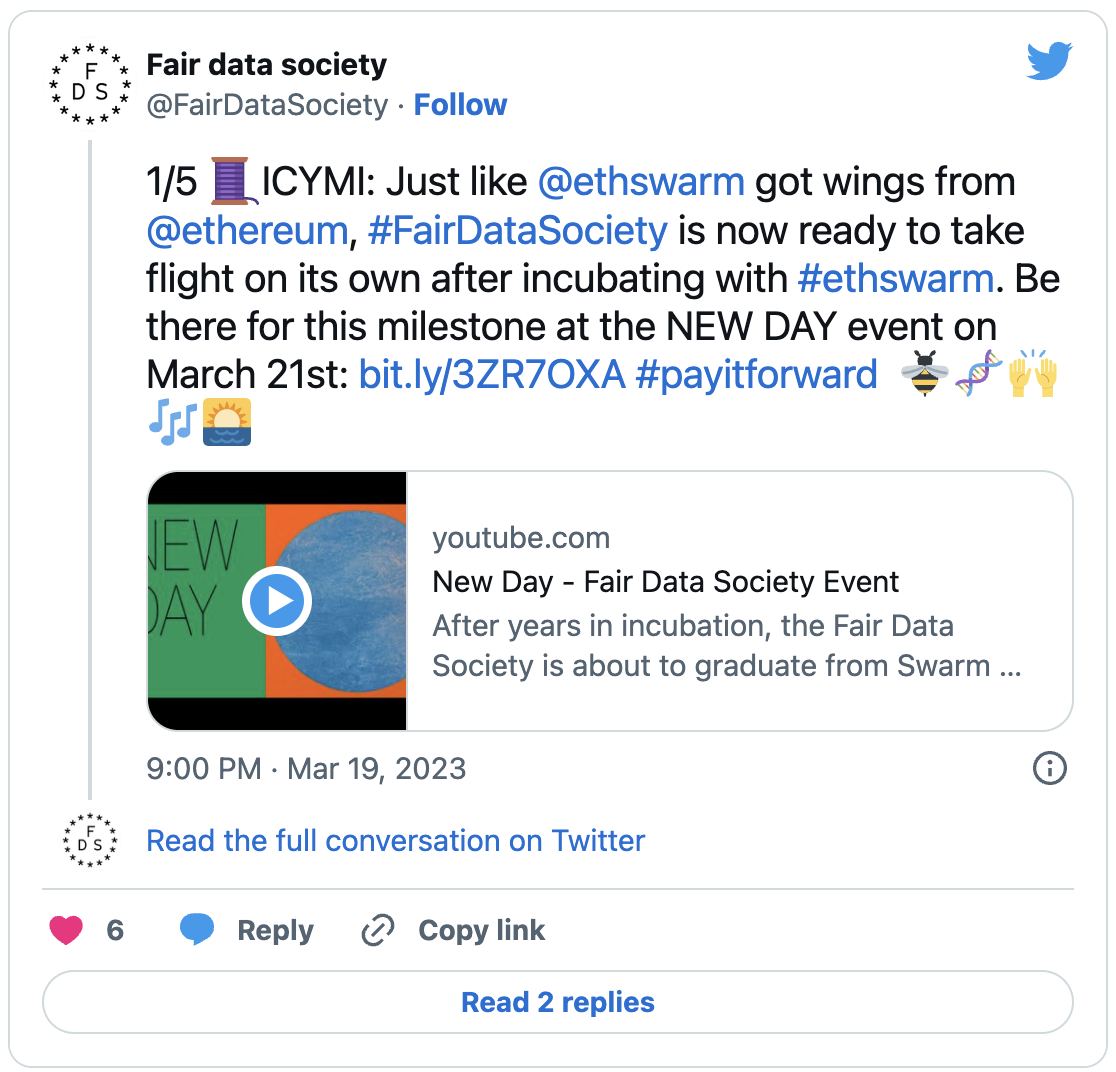 Twitter thread: https://twitter.com/FairDataSociety/status/1637544674561863683